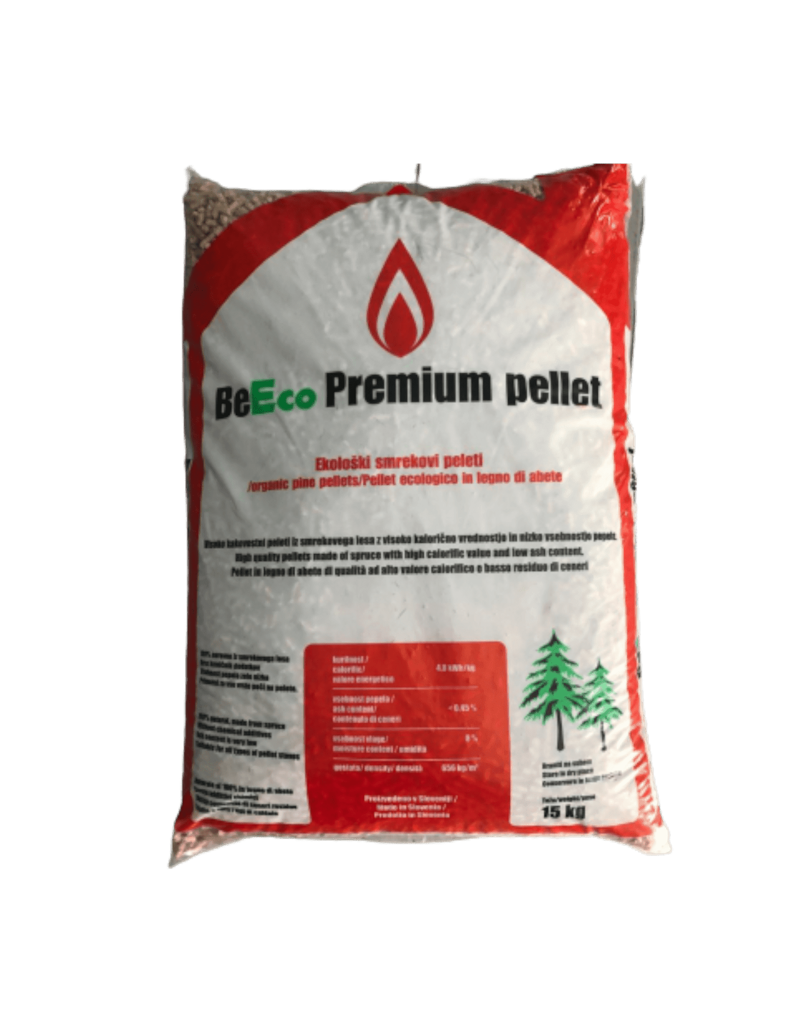 BeEco Premium smrekovi peleti so izdelani iz 100% smrekovega lesa, so svetle barve in brez dodatnih primesi.