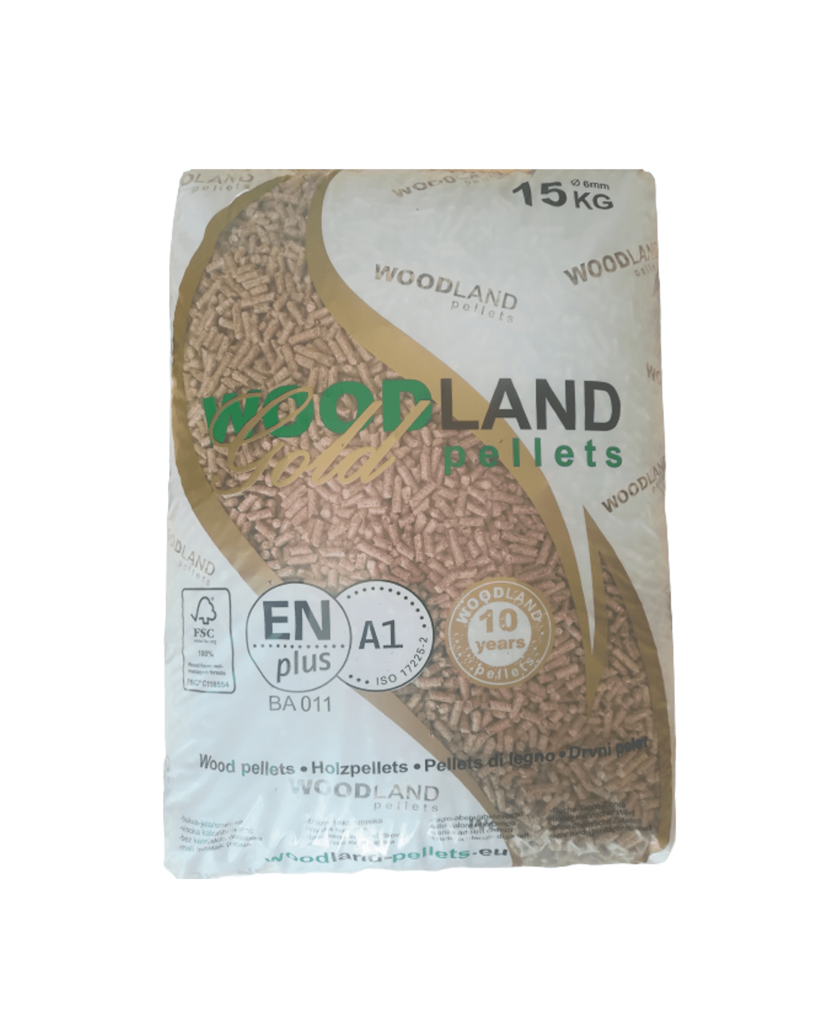 Woodland smrekovi peleti so izdelani iz 100% smrekovega lesa, so svetle barve in brez dodatnih primesi. Pakirani so v 15 kg vrečah, na paleti pa je zloženih 70 vreč. Woodland smrekovi peleti imajo Certifikat zagotavljanja kakovosti EN Plus A1, kar pomeni, da se kakovost peletov NE spreminja.